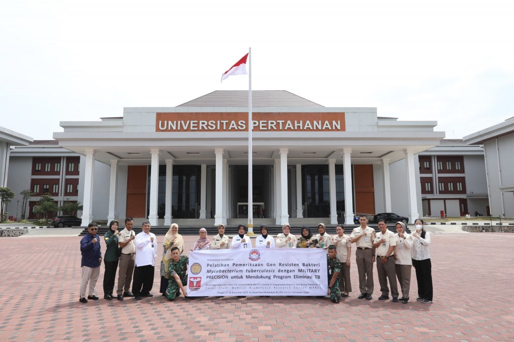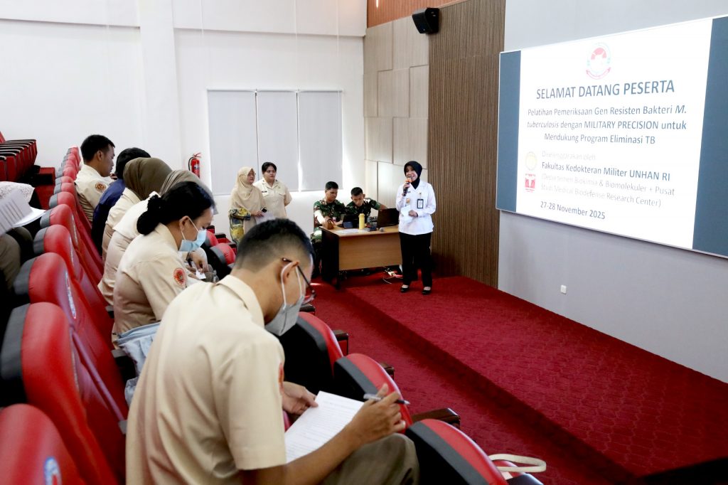 Bogor – Dekan Fakultas Kedokteran Militer Unhan RI, Mayor Jenderal TNI Dr. Dr. dr. AJ. Didy Surachman, Sp.OT(K) Spine., S.H., M.HKes., MARS, yang diwakili oleh Wakil Dekan Bidang Akademik dan Kemahasiswaan FKM Unhan RI, Brigjen TNI Dr. dr. Krisna Murti, Sp.BS., membuka secara resmi pelatihan bertema “Pemeriksaan Gen Resisten Bakteri Mycobacterium tuberculosis dengan Military Precision untuk Mendukung Program Eliminasi TB”, yang mengedepankan konsep military precision sebagai penguatan upaya nasional dalam Eliminasi TB. Kegiatan ini dilaksanakan selama dua hari mulai tanggal 27-28 November 2025 bertempat di Ruang Introduction, Lantai 1 Laboratorium dan Galeri Anatomi Fakultas Kedokteran Militer, Kampus Bhineka Tunggal Ika, Unhan RI. (Kamis, 27/11).